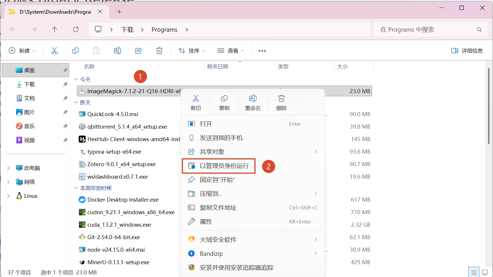 右键安装包,以管理员身份运行