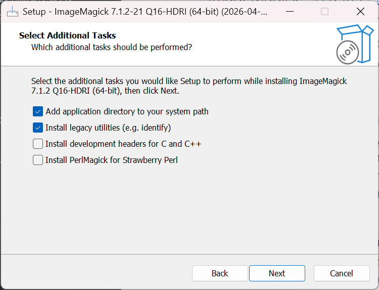 Add application directory to your system path这是最重要的。勾上后,你在 PowerShell 里直接输入 magick 就能用。 -