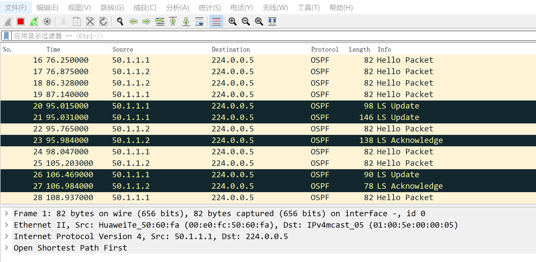 10.1.1.0/24 O_ASE 150 1 D 50.1.1.1 GigabitEthernet0/0/0