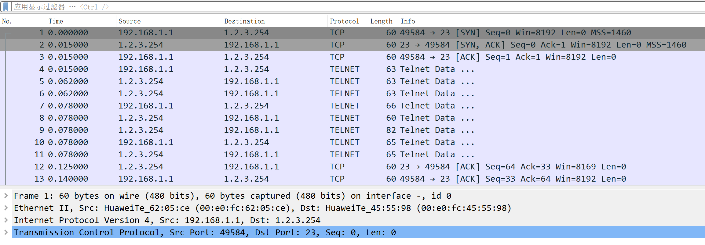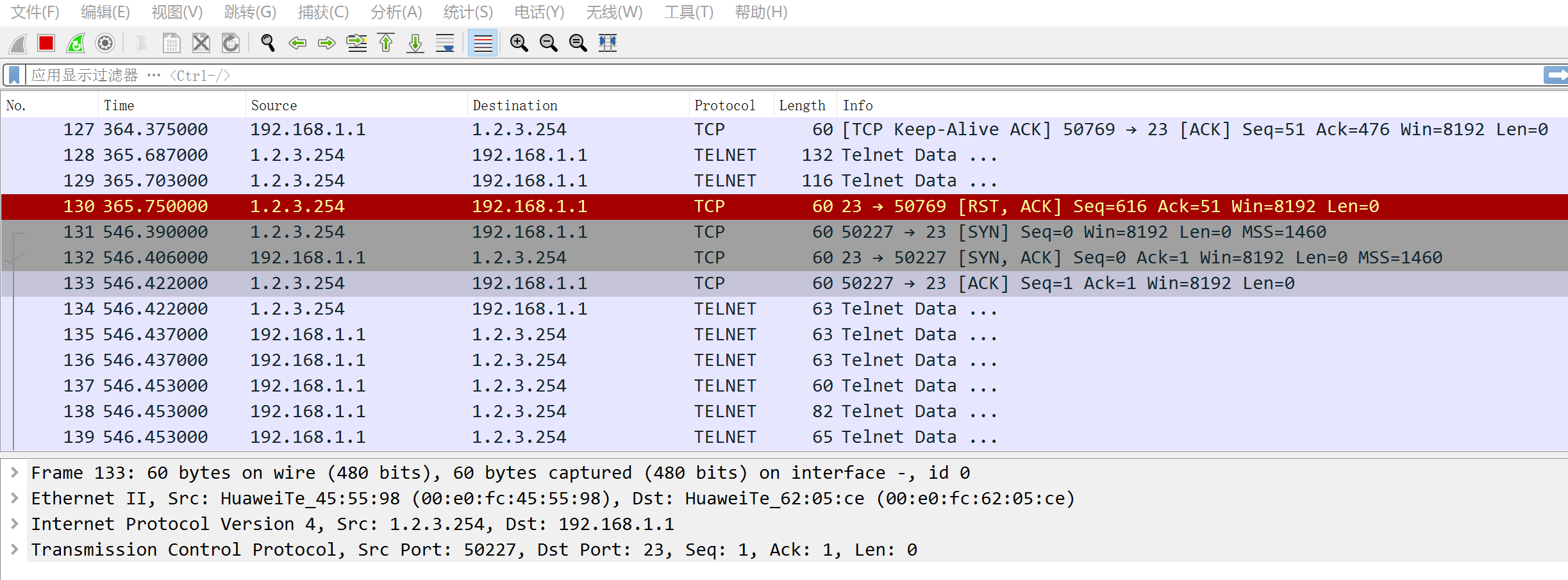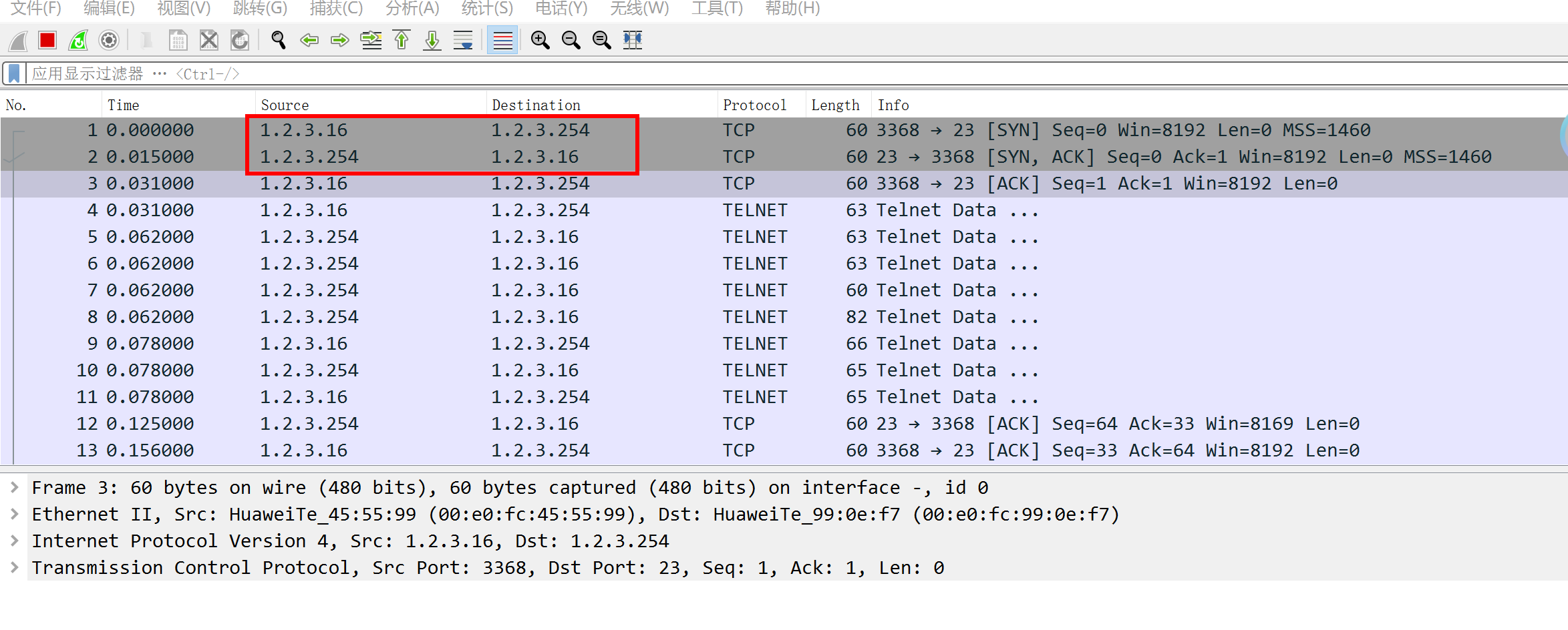 R1通过telnet远程登录到R3(模拟TCP流量)