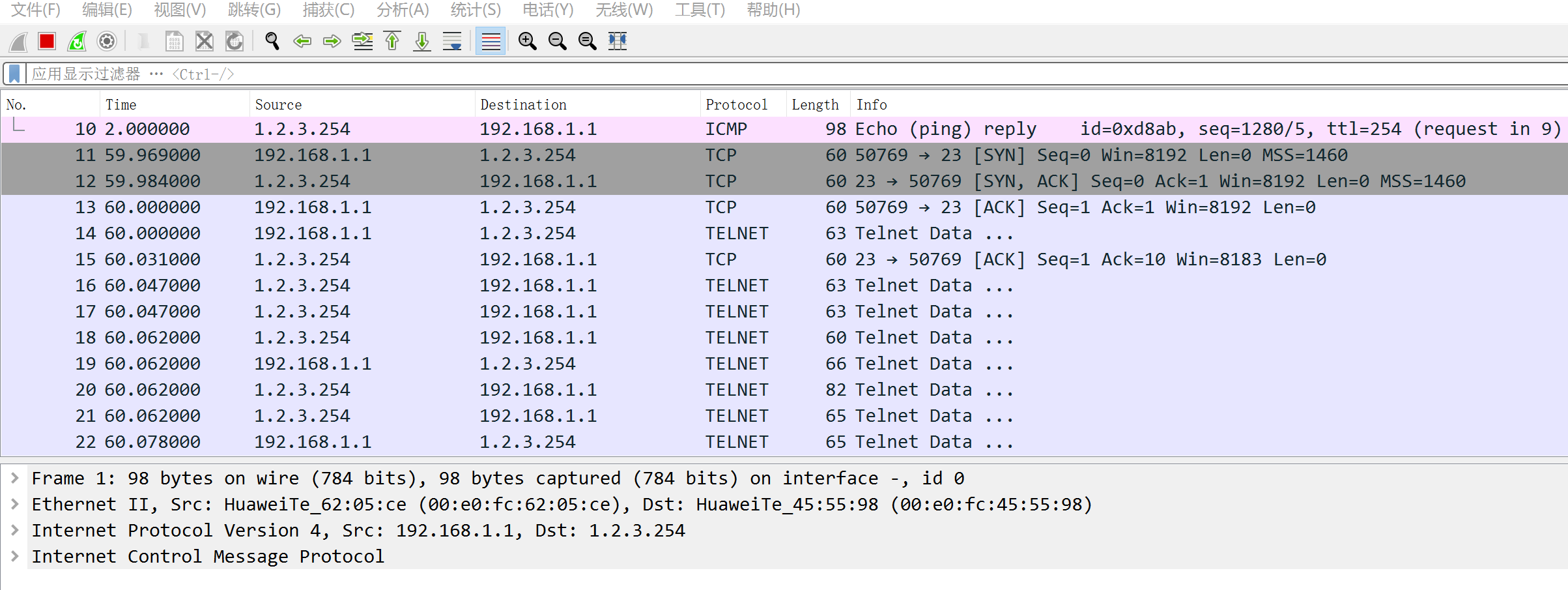 <R1>telnet 1.2.3.254