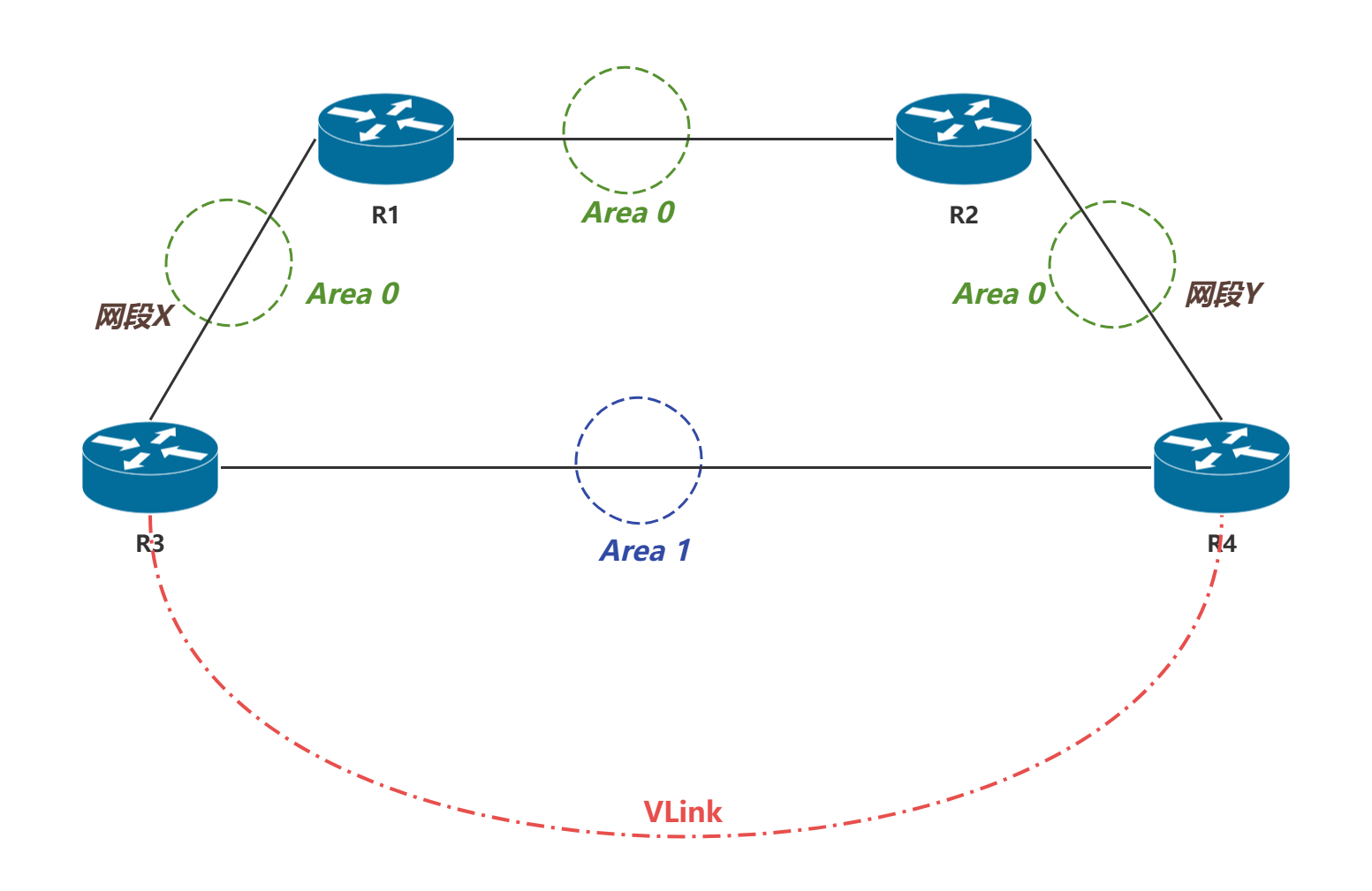 让R3和R4互访可以走最优路径,让X和Y网段互访可以直接走R3和R4之间的链路