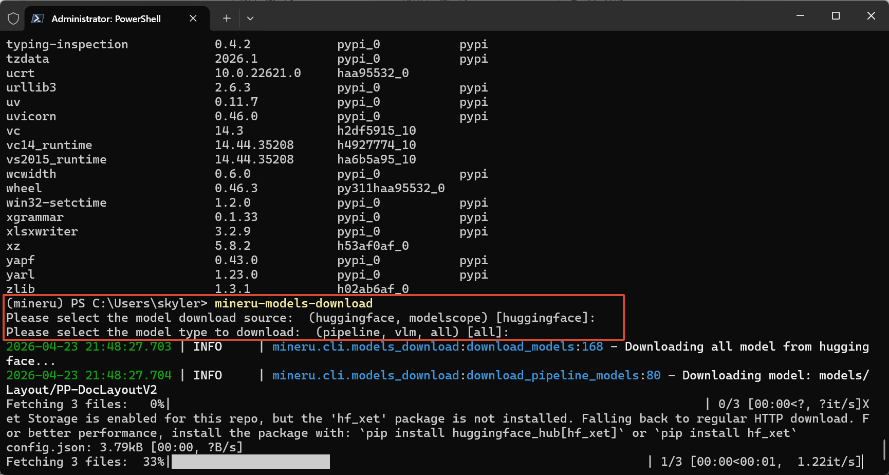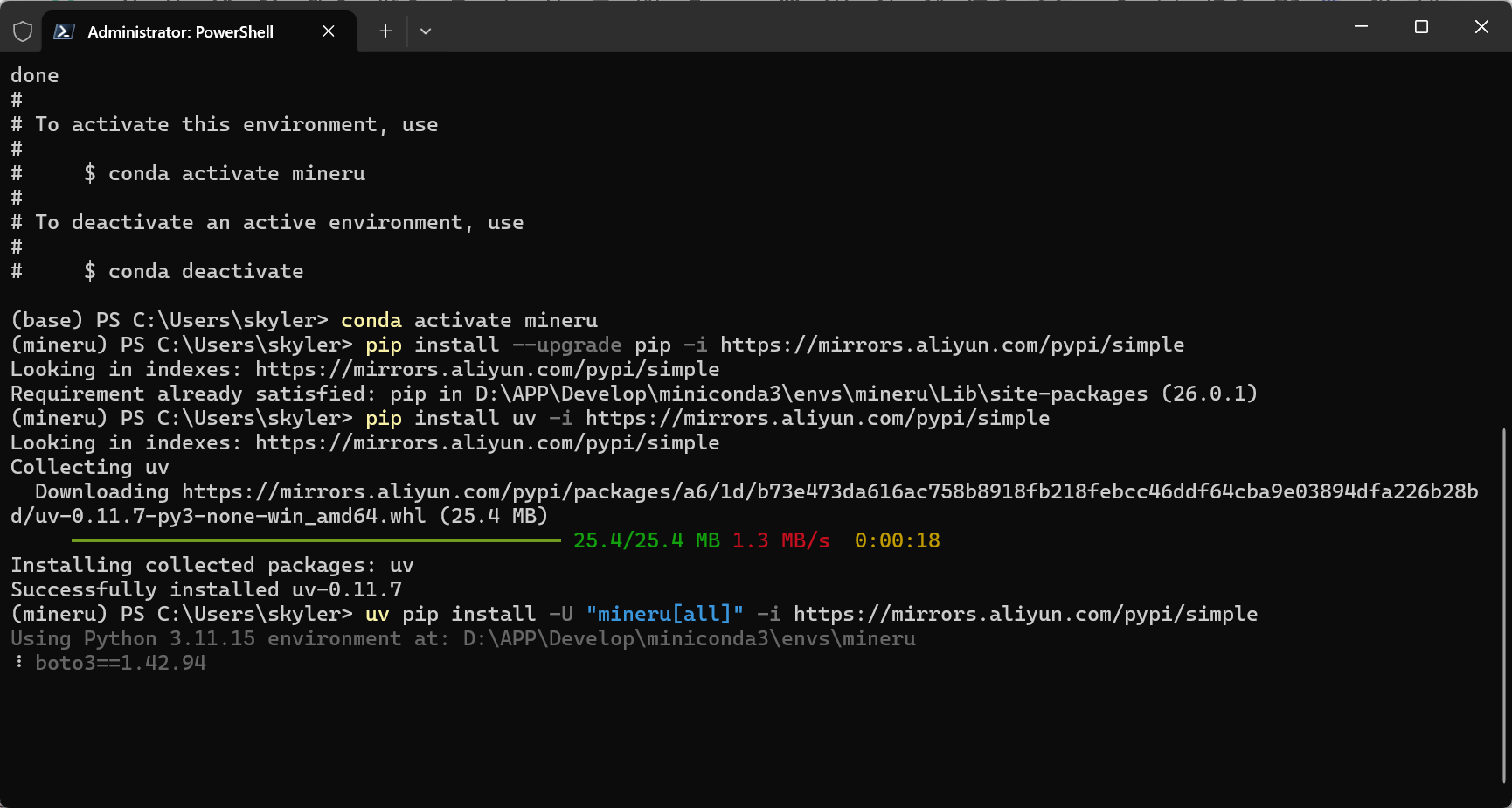 uv pip install -U "mineru[all]" -i https://mirrors.aliyun.com/pypi/simple