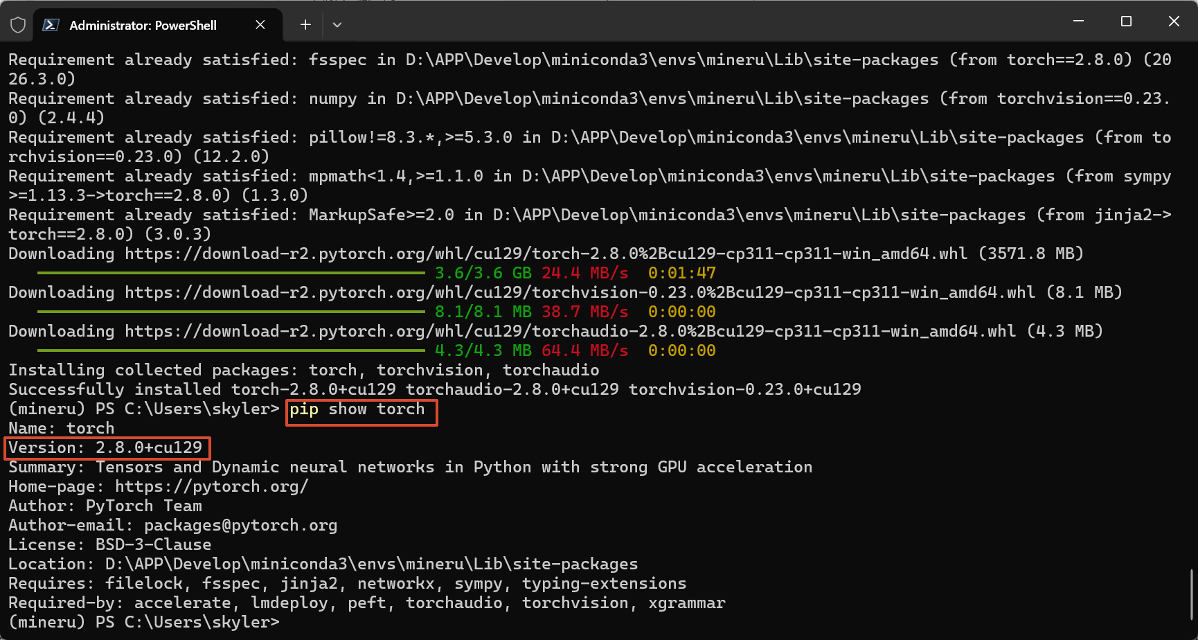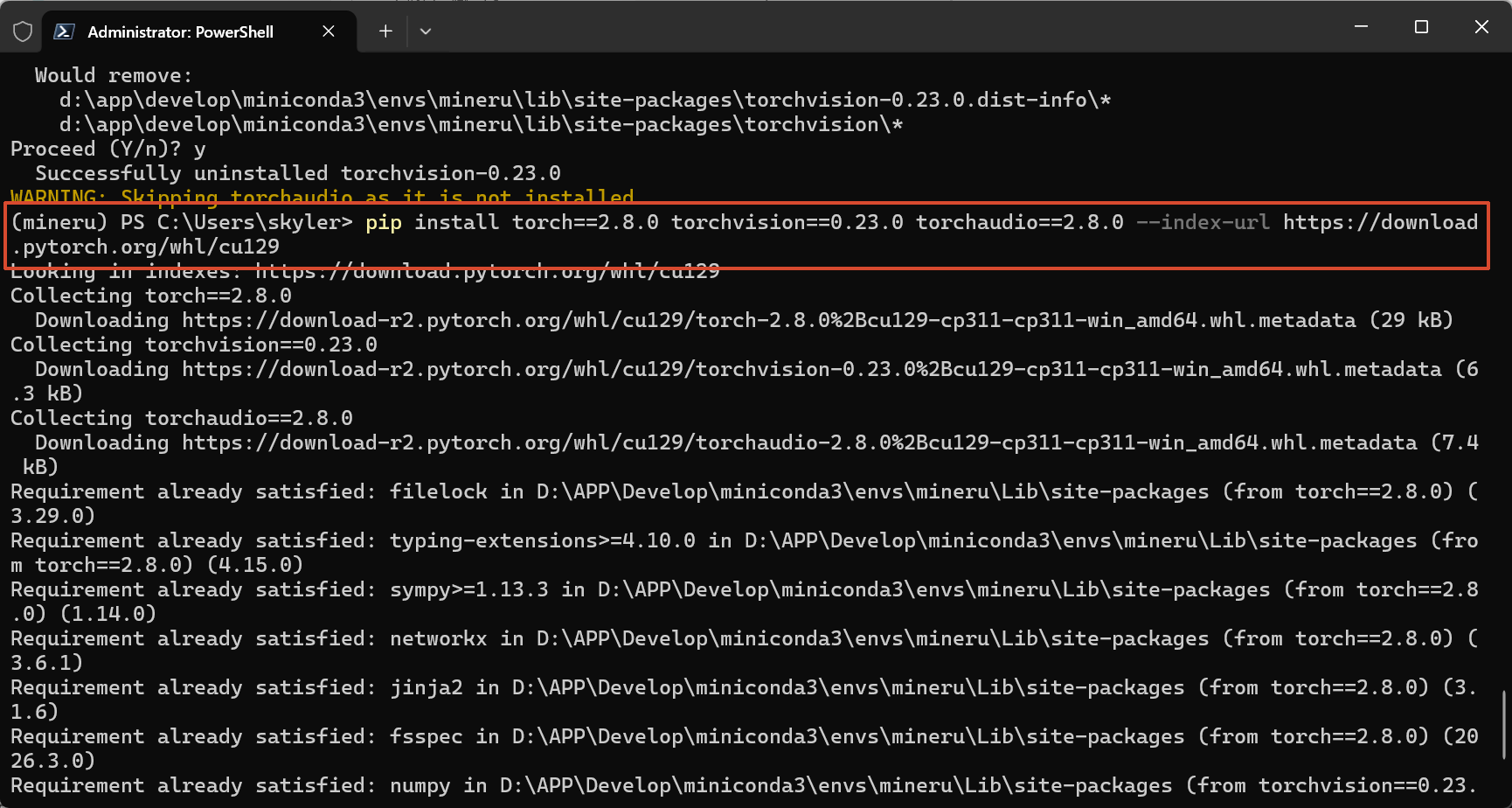 pip install torch==2.8.0 torchvision==0.23.0 torchaudio==2.8.0 --index-url https://download.pytorch.org/whl/cu129