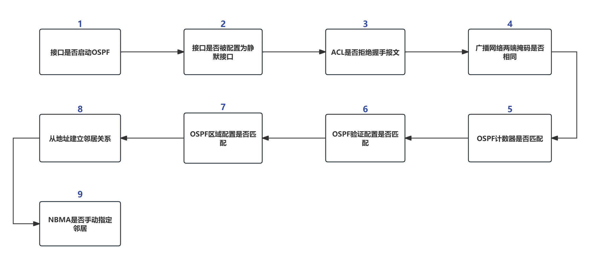 OSPF的运行是基于设备接口的,若OSPF没有在接口启动,则邻居关系肯定无法形成