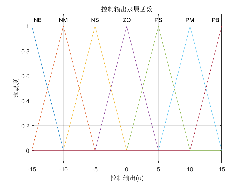 控制量 u 的隶属度函数(论域:[-15, 15])