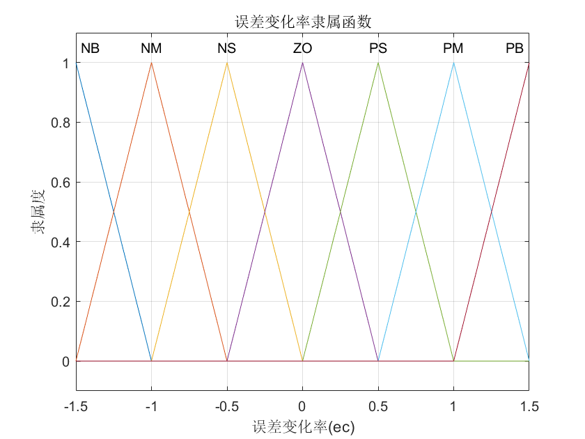 误差变化率 ec 的隶属度函数(论域:[-1.5, 1.5])