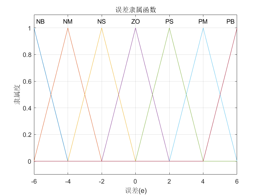 % 为误差变量e添加7个三角形隶属度函数,覆盖负大(NB)到正大(PB)的范围