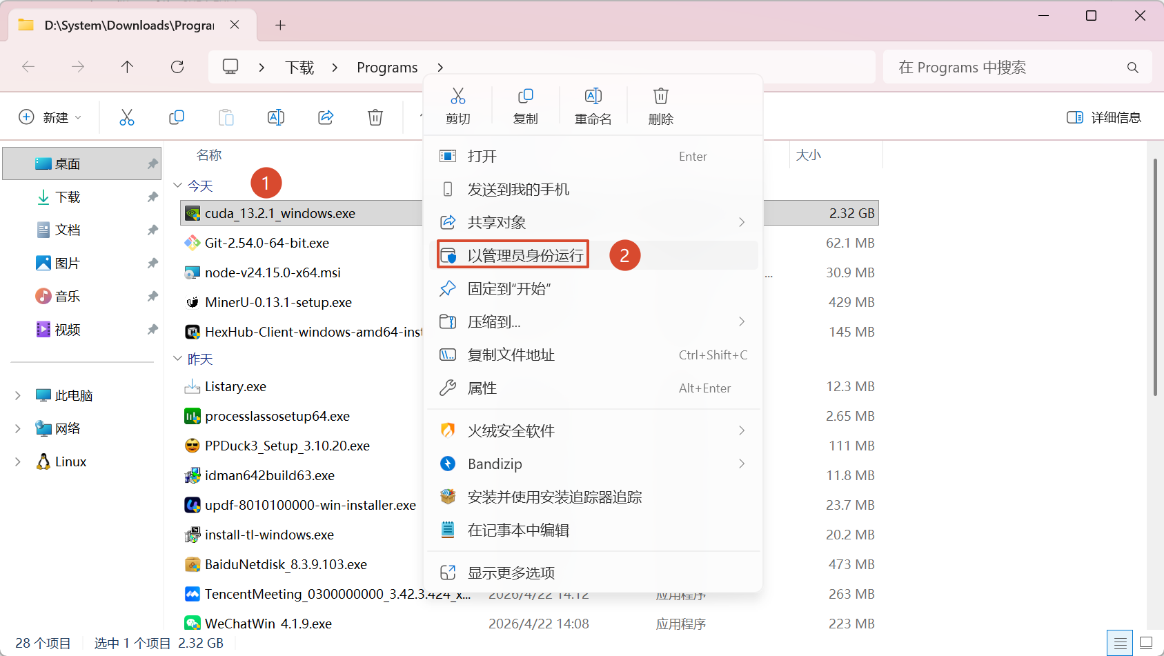 右键安装包,以管理员的方式运行