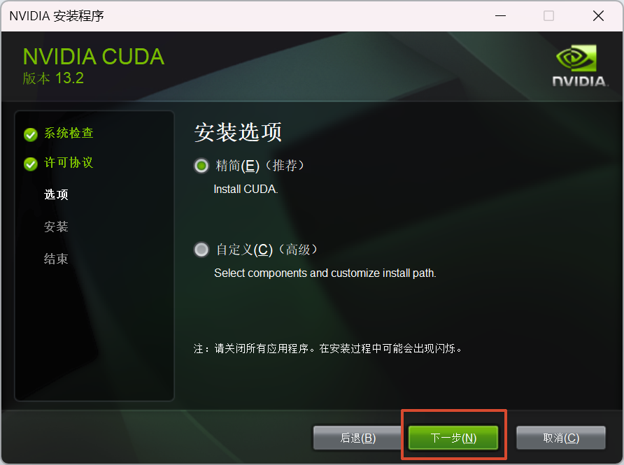 需要先下载英伟达显卡驱动,这里略过。