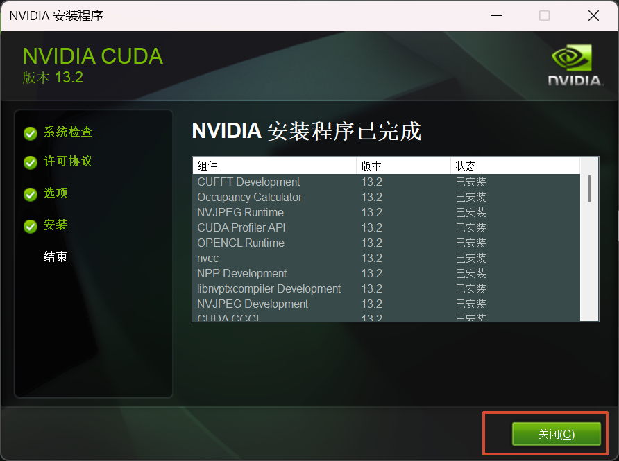 至此结束全部安装。