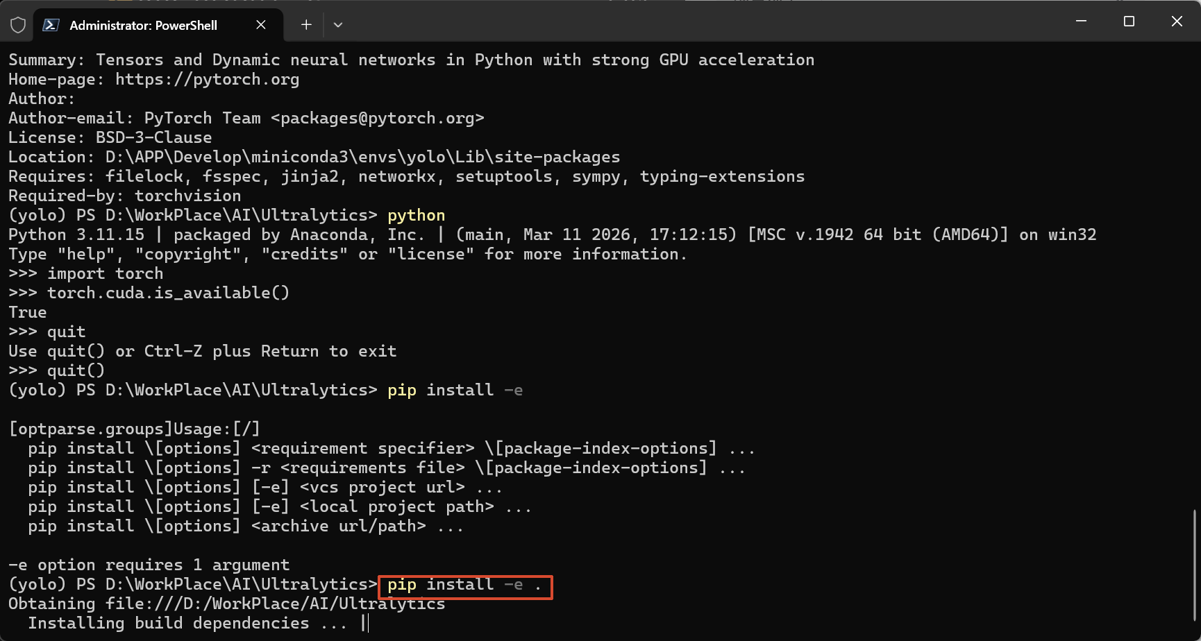 conda create -n yolo python=3.11 -y