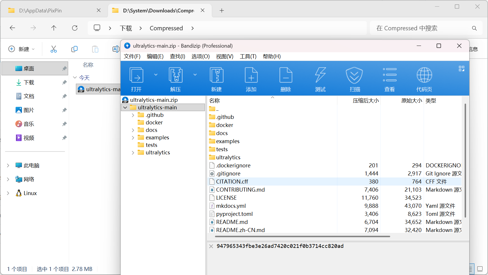 解压至工作目录(可选:重命名)
